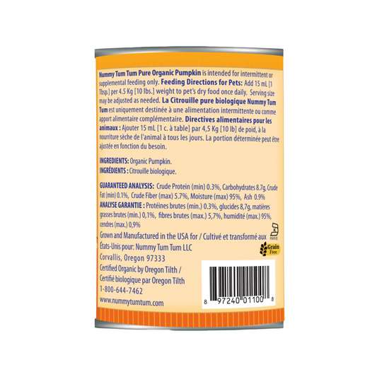 Yummy Tum-Tum - Purée de citrouille biologique riche en fibres pour chien ou chat (conserve)