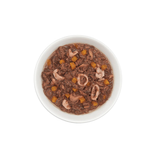 Tiki Cat - Nourriture humide pour chat au thon, calamars et citrouille (morceaux déchiquetés)