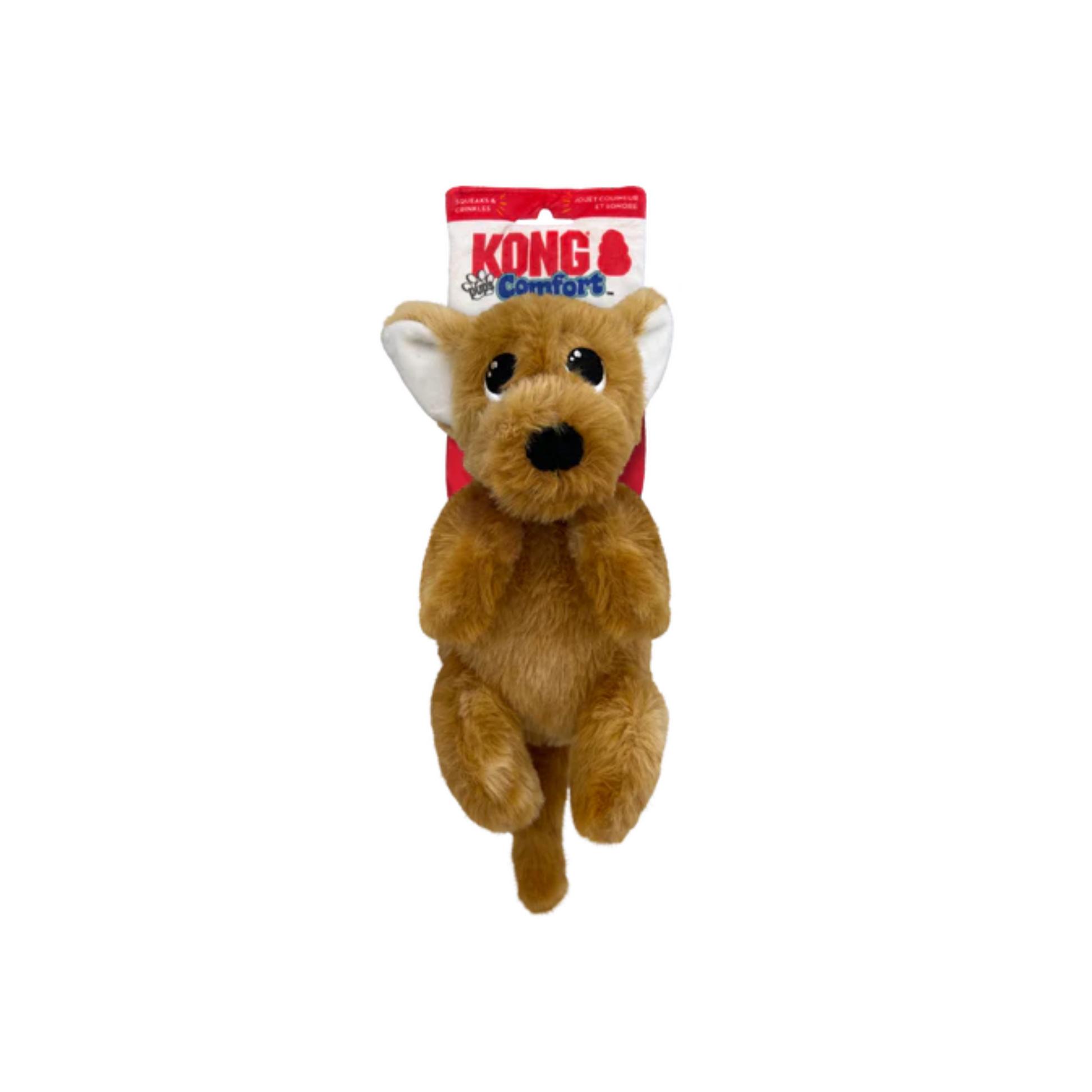 Les jouets en peluche pour chien Comfort de KONG Comfort sont des jouets polyvalents pour le jeu et les câlins, dotés d'une fourrure en peluche douce et d'un corps souple qui en font des compagnons de câlins idéaux pour se blottir et à rapporter. De plus, les chiens peuvent jouer avec l'emballage en peluche qui émet un son de froissement. Un couineur et des oreilles qui émettent des sons de froissement suscitent l'instinct et encouragent les chiens à jouer tandis que le corps adorablement souple rend les secousses encore plus satisfaisantes, avec moins de rembourrage pour moins de dégâts.