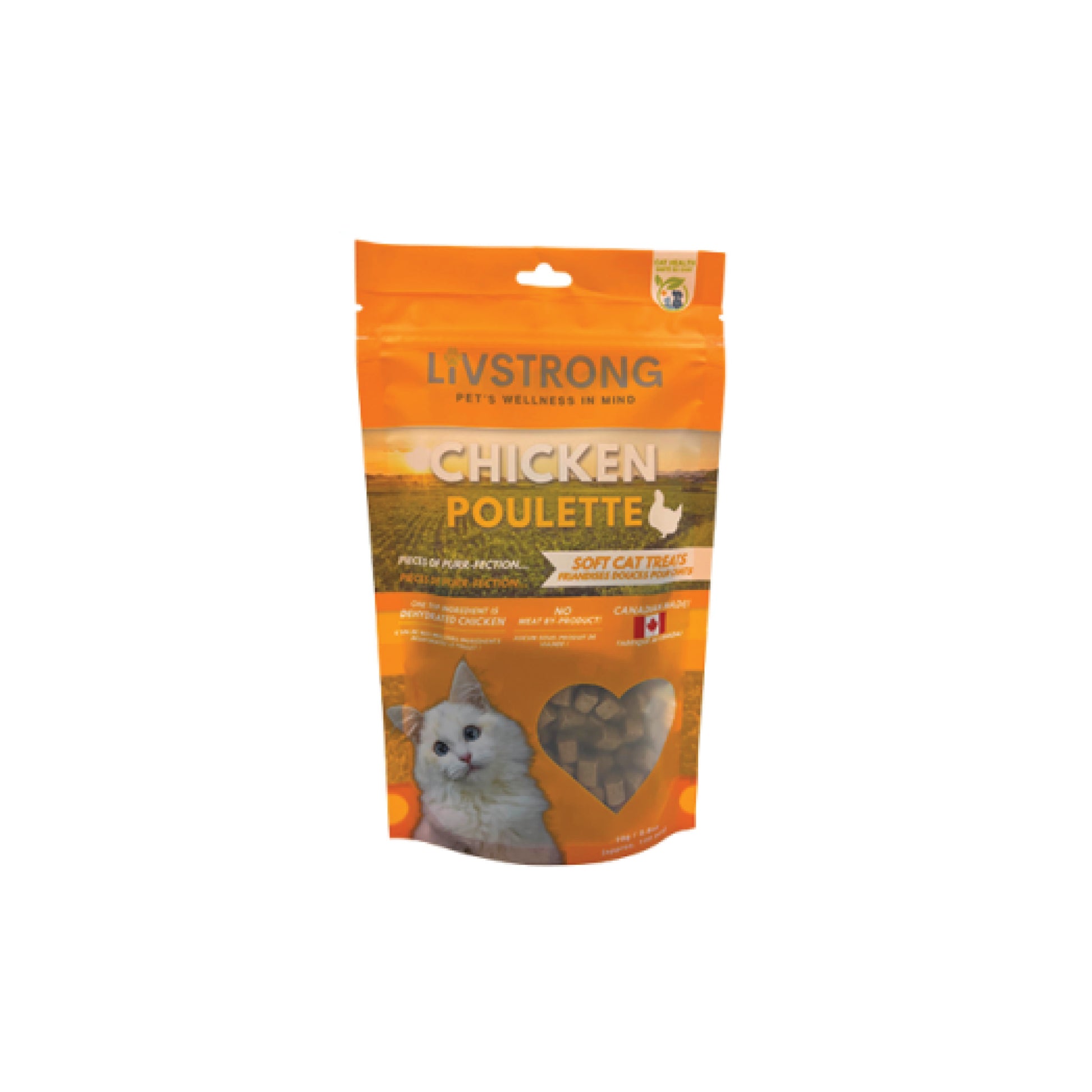 Ces friandises moelleuses au poulet pour chat sont très appétissantes et les chats adorent le goût du poulet déshydraté. Ces friandises sont riches en protéines, fabriquées avec des ingrédients naturels et limités, de qualité humaine, et ne contiennent aucun sous-produit de viande. Fabriqué en Ontario, Canada, avec des ingrédients locaux.