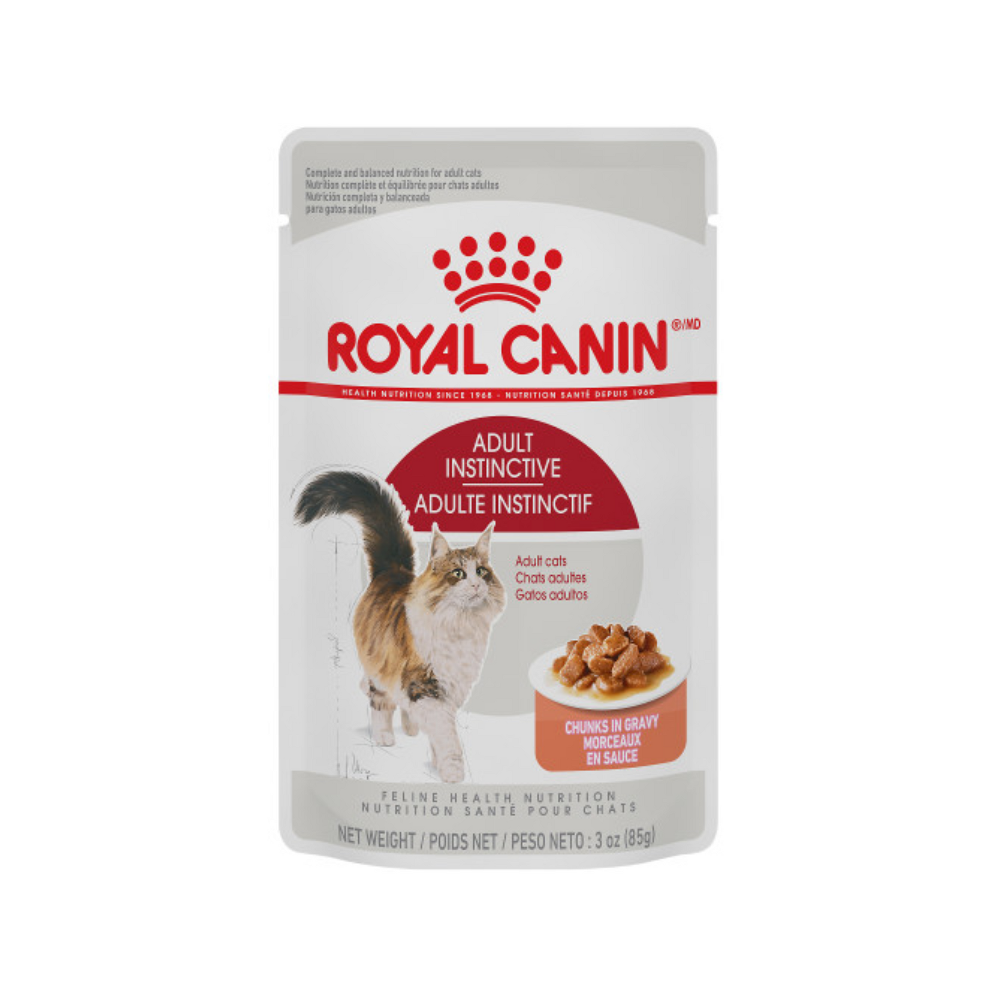 La nourriture humide pour chat ADULTE INSTINCTIF™ présente l'équilibre optimal de protéines, de graisses et de glucides que les chats adultes ont besoin. Un niveau d'énergie modéré pour aider les chats adultes à maintenir leur poids santé.