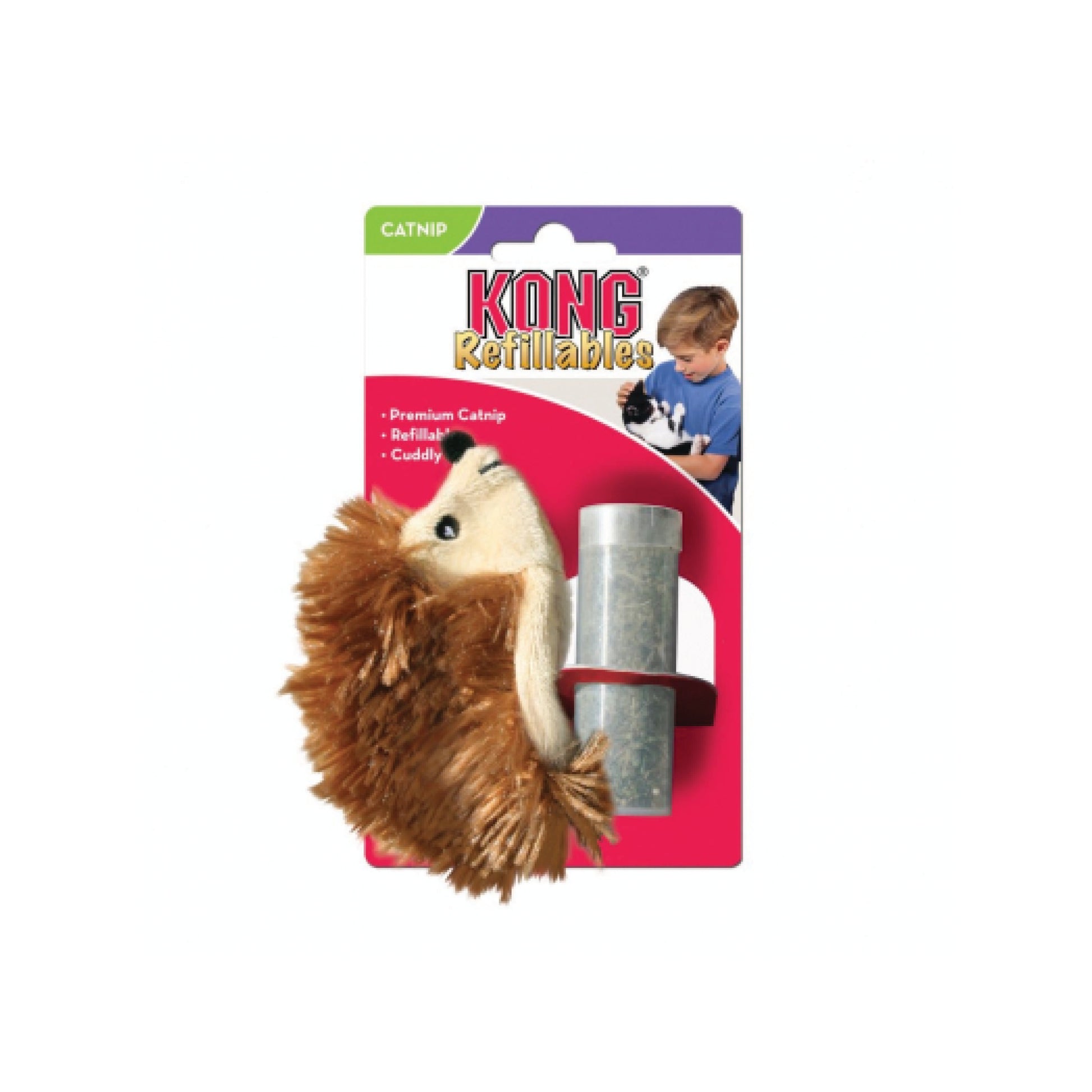 This soft and snuggly plush catnip toy has a reclosable pouch to hold fresh catnip securely in place. This toy includes a generous amount of KONG's premium North American catnip in a reclosable vial. It has a compartment that can be opened and closed, so that fresh catnip can be inserted over time. You can store extra catnip in the freezer to keep it fresh for future play dates.