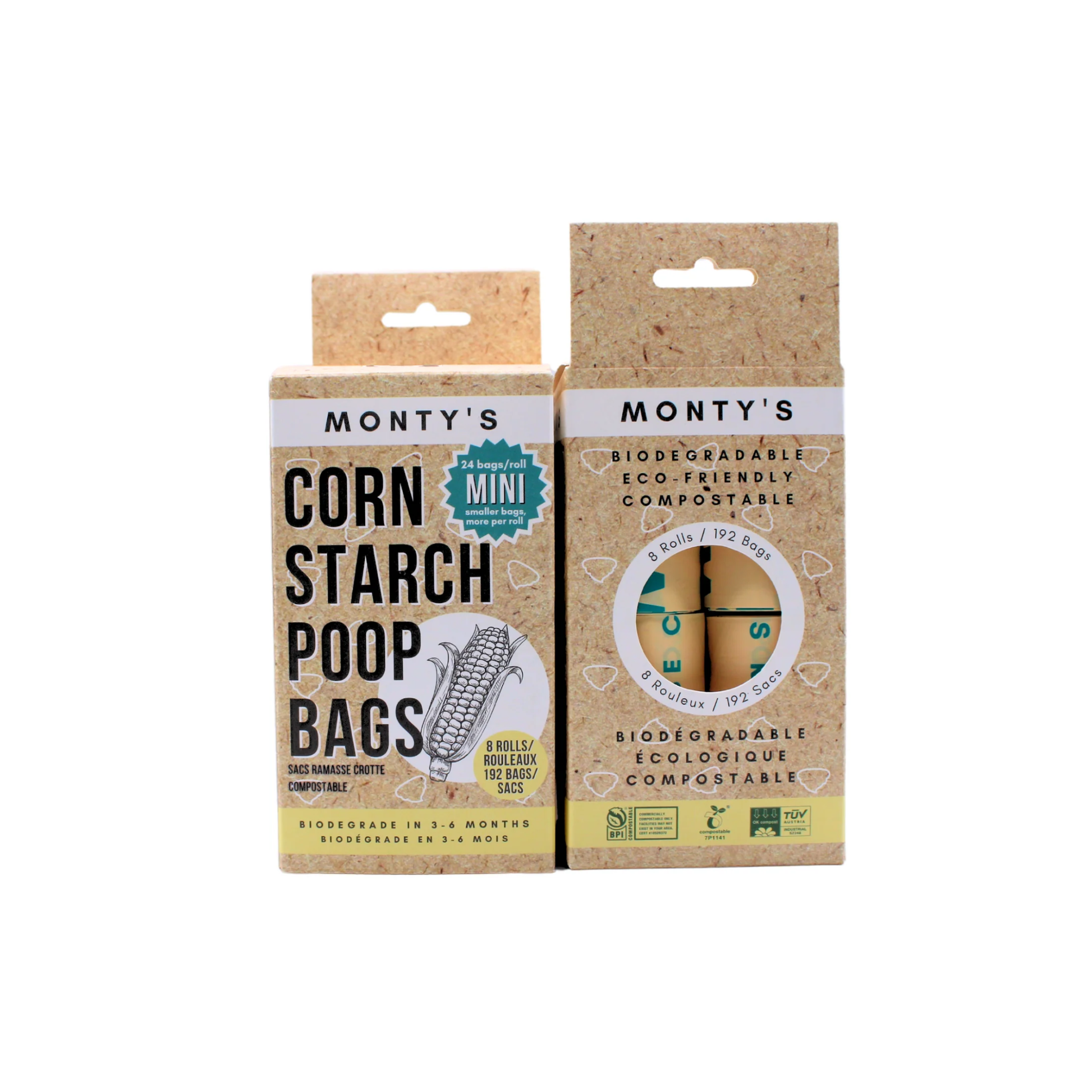 Monty's - Compostable Cornstarch Mini Poop Bags (192 mini bags - 23x21 cm)