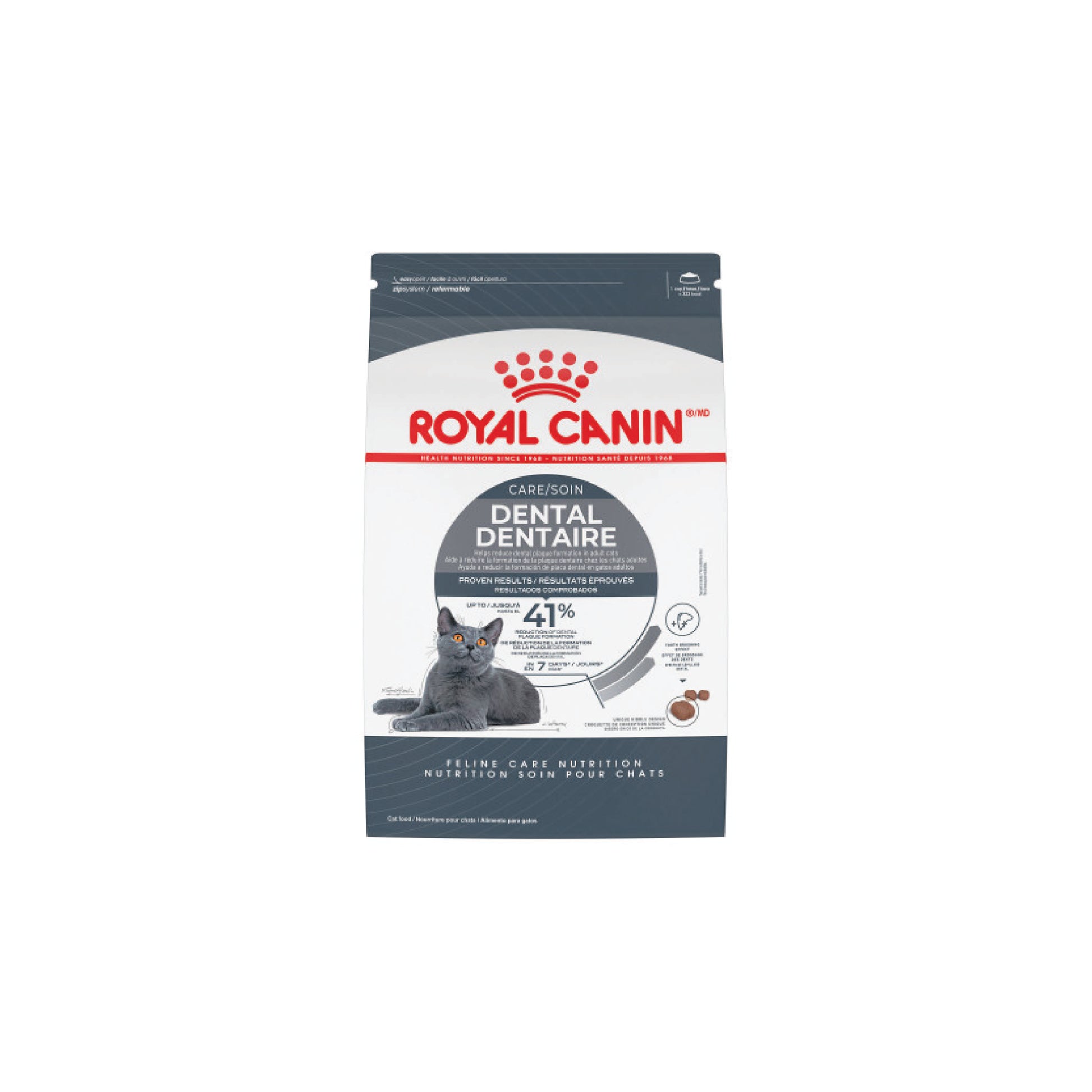 - Oral Care Plus: -41% reduction in tartar formation after 7 days of exclusive use of Royal Canin’s ORAL CARE formula contains sodium tripolyphosphate, an active anti-tartar agent that traps calcium in a cat’s saliva to reduce tartar up to 41%*. The kibble shape, size and texture simulate a brushing action on the teeth that helps to reduce plaque in 7 days†.