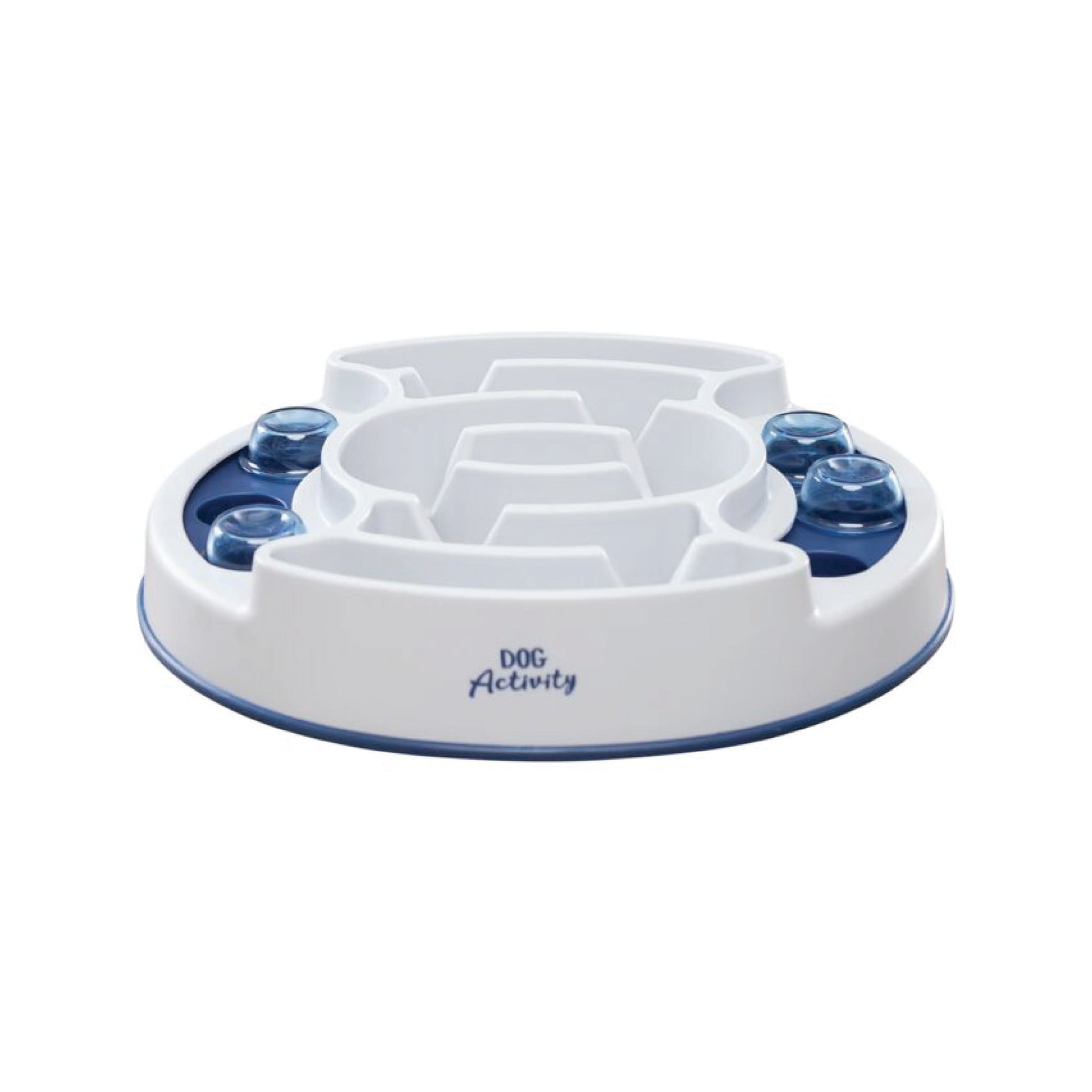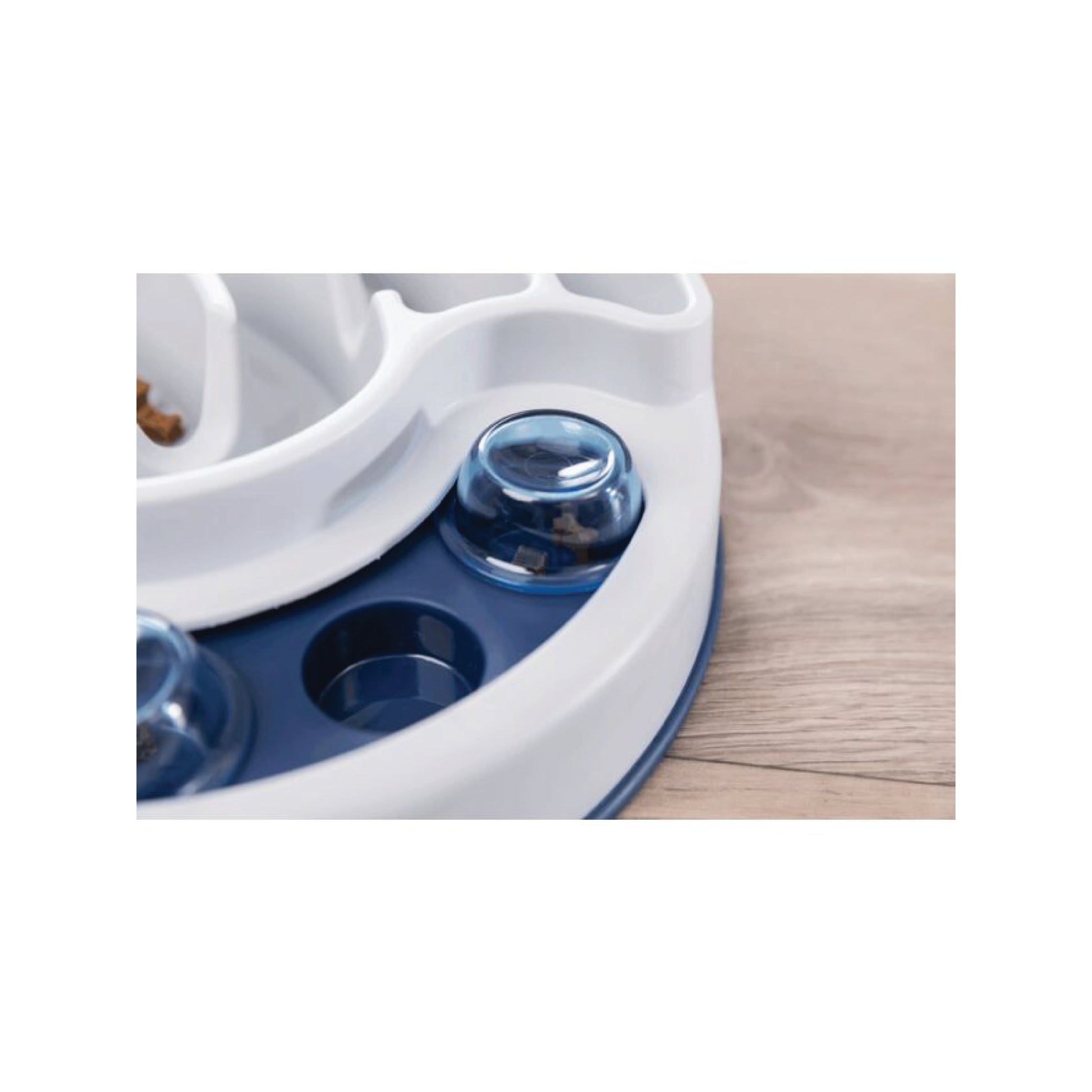 This strategic toy will work your dog's brain and can also be used as a slow feeder to slow down his/her food intake! Simply insert treats/food into the different openings / hiding places and watch him have fun looking for them. The non-slip rubber feet keep the game in place as your pet flips, slides, lifts and explores.