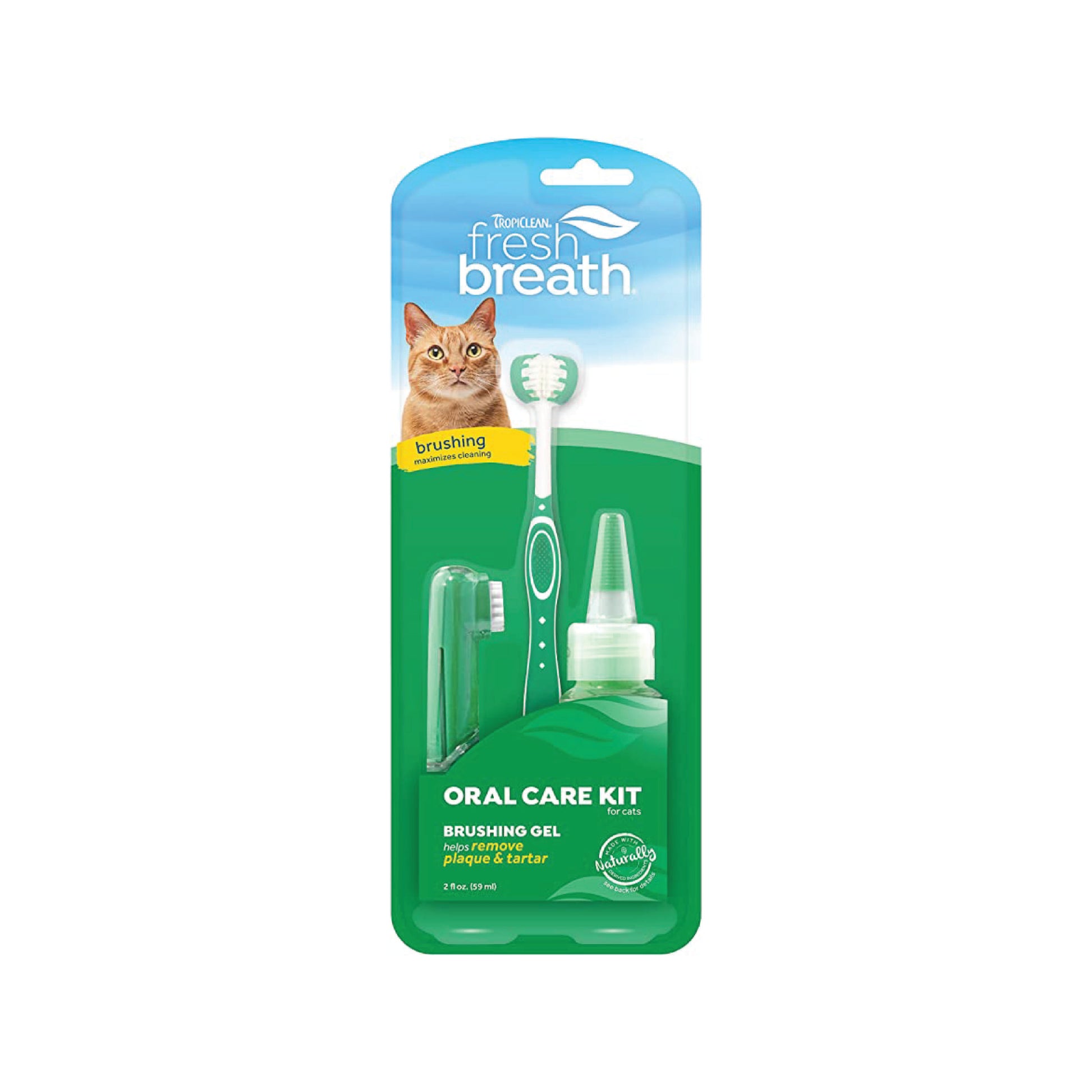 Oral care is a critical part of a cat’s overall health, making it an important responsibility of pet ownership. Even with routine professional cleanings, cats still need regular teeth brushing at home. The Fresh Breath Oral Care Kit for Cats provides everything you need to establish a consistent oral care routine for your cat. The kit includes a Fresh Breath TripleFlex™ Toothbrush, Gentle Finger Brush, and Brushing Gel. When used regularly, you can provide your cat with top-notch dental care, right at home.
